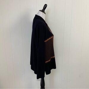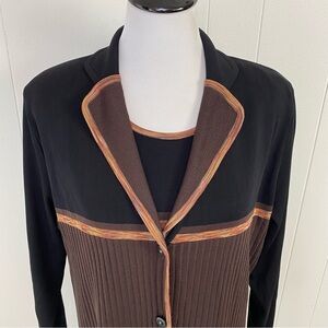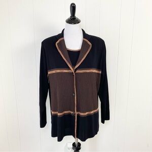 Exclusively Misook Button Cardigan & Top Set Black Brown Size XL Color block *