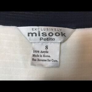 Exclusively Misook Cardigan Sweater Size PS White Navy Blue Trim Gold Buttons