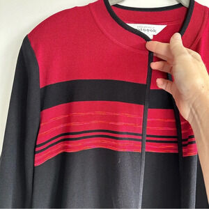 Exclusively Misook Cardigan Womens L Sweater Open Front Black Red Slinky Knit
