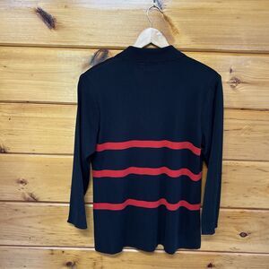 The Exclusive Misook Cardigan in women's size XL is a stylish and colorful addition to any wardrobe. This red and black collared cardigan is designed for plus size women, offering a comfortable and flattering fit. Made by the brand Exclusively Misook, known for their quality and attention to detail, this sweater is perfect for adding a pop of color to any outfit.