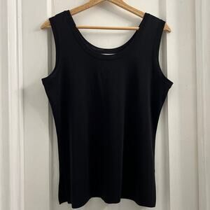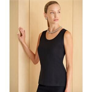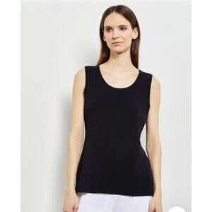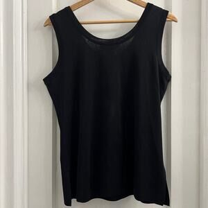 Exclusively Misook Double Scoop Neck Knit Tank Top, Black size M