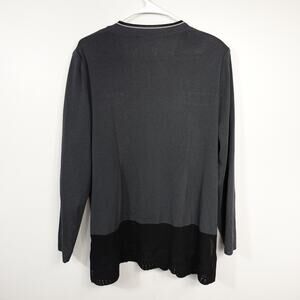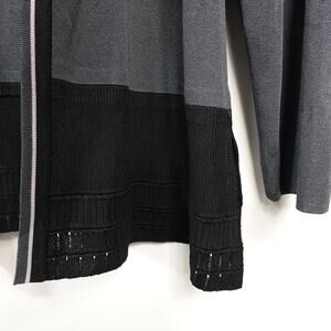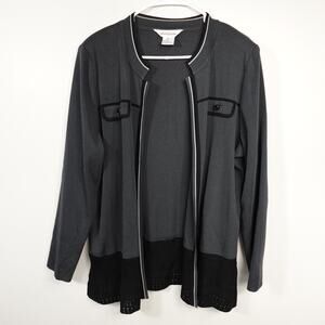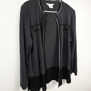 Exclusively Misook Grey Cardigan Open Front Black White Trim