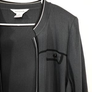 Exclusively Misook Grey Cardigan Open Front Black White Trim Shoulder Pads