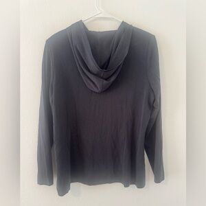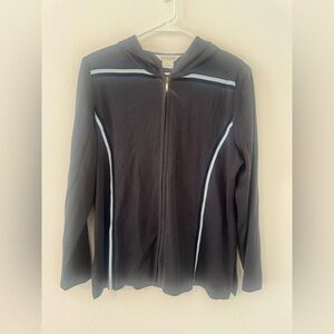 Exclusively Misook Grey Stretch Knit Full Zip Hoodie Blue Trim Size Large