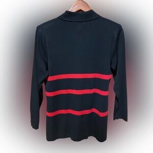 Exclusively Misook Jacket Black Knit Red Striped Button Up Cardigan Small