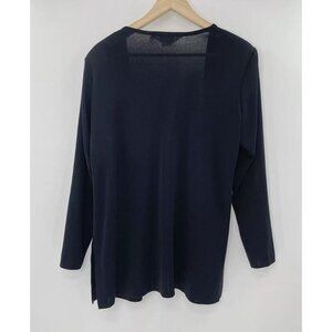 Exclusively Misook Knit Black Acrylic Cardigan Slinky Sz M, Slits, Shoulder Pads