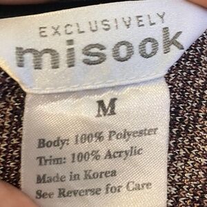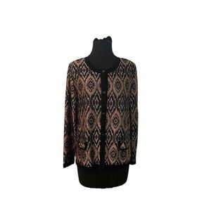 Exclusively Misook Knit Cardigan Sweater Gold Black Ikat Print Button Front Med