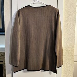 Exclusively Misook Knit Full Zip Cardigan and Tapered Pant Set Brown Black SM