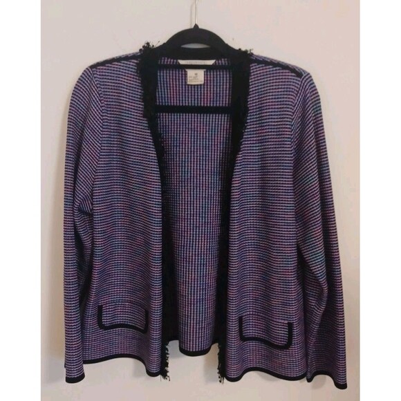 Exclusively Misook Knit Tweed Blazer Jacket M Black Pink Purple Open Front