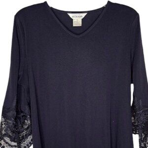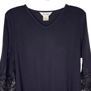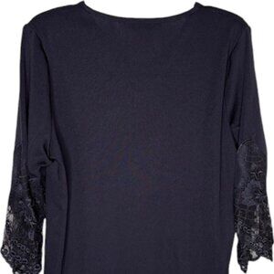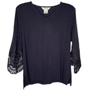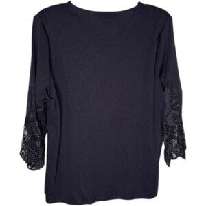 Exclusively Misook Lace-Tipped V-Neck Top - Deep Navy - XL