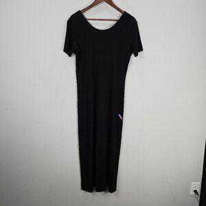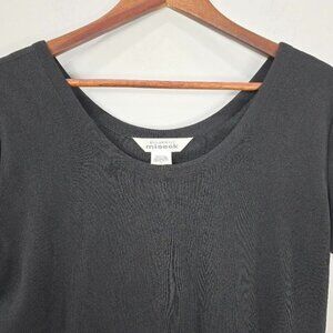 Exclusively Misook Midi Dress M Black Knit W/Side Slit Short Sleeve Minimalist
