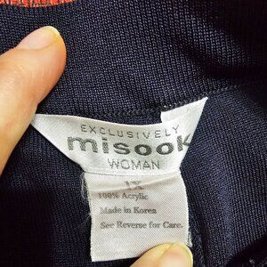 Misook pants, women's pants, navy pants, acrylic blend, elastic waist, plus size pants, Korean made, everyday wear, comfortable fit, size 1X, navy blue, soft fabric, Misook clothing, office, quiet luxury, nautical, everyday, capsule, formal, old money, mature, stretch, elastic waist, timeless