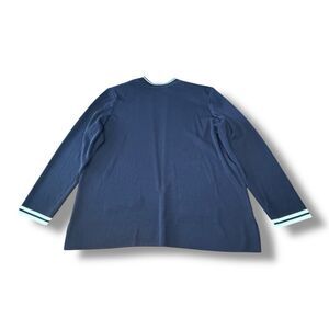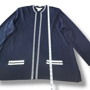 Exclusively Misook Open Cardigan Navy White Classic Coastal Nautical Preppy XL