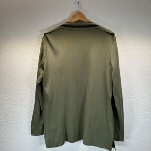 Exclusively Misook Open Cardigan Women's L Large Long Sleeves Army Green Pockets Side Slits Travel Office Career