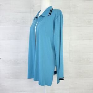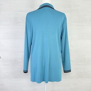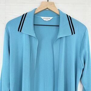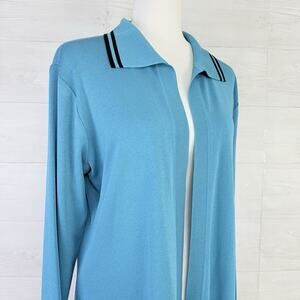 Exclusively Misook Open Front Cardigan Jacket Size M Petite Teal Black Acrylic