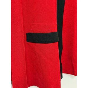 Exclusively Misook Open Jacket Red Black Trim Faux Pockets Shoulder Pads Size L