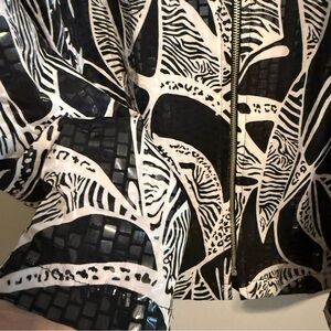 EUC plus size full zip light jacket or top. No flaws noted. It features zebra print like pattern with sparkly sequins. Please see photos for measurement.