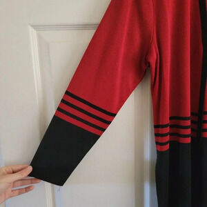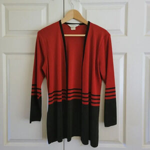 Exclusively Misook Red and Black Open Cardigan Shoulder Pads Women's Medium