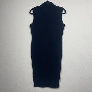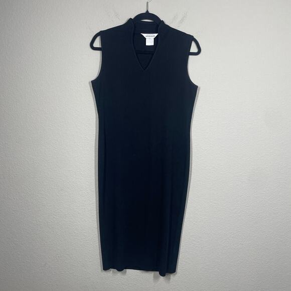 Exclusively Misook Small Mandarin Collar Sheath Dress Black V Neck Sleeveless