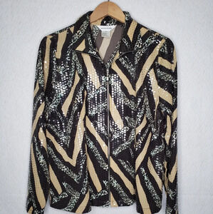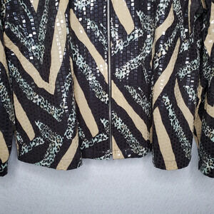 Exclusively Misook Sparkly Shiny Mixed Leopard Print Full Zip Collar Jacket Sz L