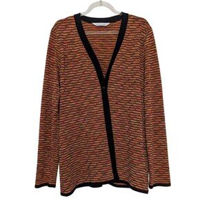 Exclusively Misook Stripe 1 Button Cardigan Womens Size Medium Orange Rust