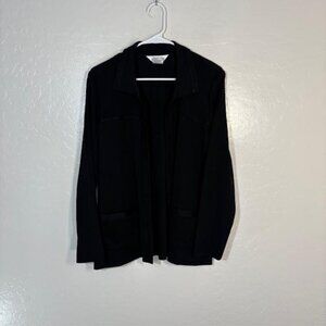 Exclusively Misook Sweater Womens Medium Black Knit Open Front Cardigan Jacket
