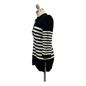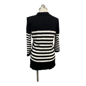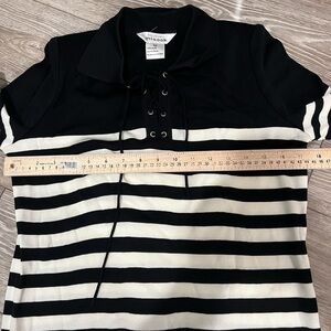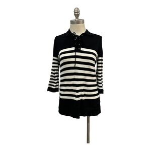 Exclusively Misook Top Lace Up Stripes XS Acrylic Collared Black White Knit
