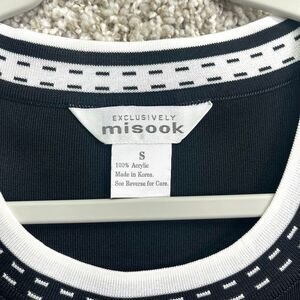 Exclusively Misook Top Women’s Small Black & White 3/4 Sleeve Stretch Knit NWT
