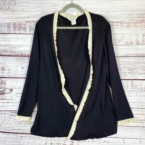 Exclusively Misook Woman Black Open Cardigan Cream Knit Ruffle Sweater Plus 2XL