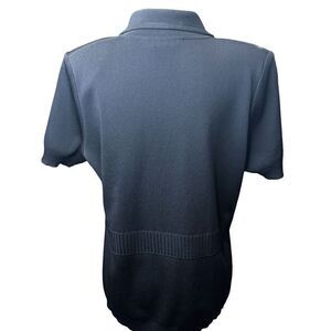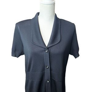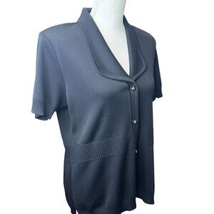 Exclusively Misook Womens Black Knit Short Sleeve Top Size M Decorative Buttons