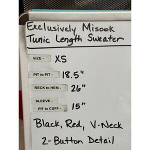 Exclusively Misook Women's Black & Red V-Neck Tunic Length Sweater Size XS