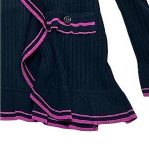 Exclusively Missook Fine Sheer Knit Ribbed OpenCardigan Magenta Ruffle Trim Flaw
