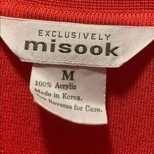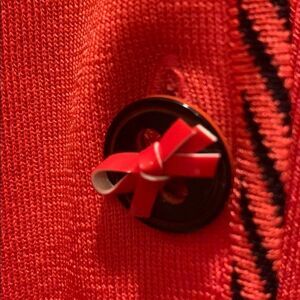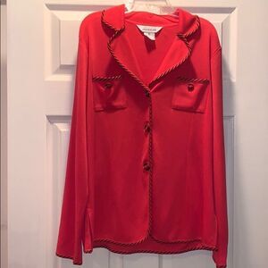Exclusively Misook Coral blazer with bow buttons, size medium. Excellent condition! Machine washable. Black trim. Pair with a black skirt or pants for a polished professional look! Similar to St. John this would be great for dog shows!