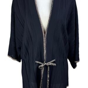Exclusivley Misook Black Textured Knit Gold Trim Layering Cardigan Sweater