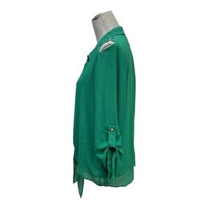 Excuse me Miss Emerald Green button down and front tie Blouse size L