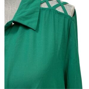 Excuse Me Miss Emerald Green button down and front tie Blouse size L