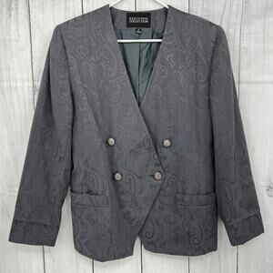 Exec Collection US 10 VINTAGE Y2K Gray Purple Jacquard Blazer Skirt Suit Set