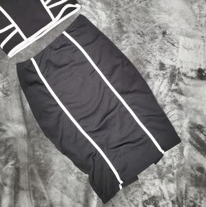 Must have! NWOT. Black and white two piece set. Black with white pen stripes. Pencil skirt with slit in back. Rock this like the boss babe you are.