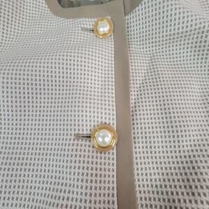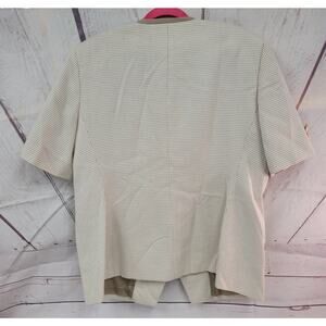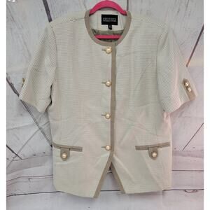 Elevate your wardrobe with this sophisticated Executive Collection blazer! This tan button-up blazer in size 18 is the perfect addition to your professional attire. The blazer features classic shoulder pads for a structured silhouette.