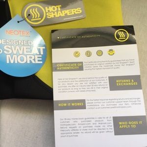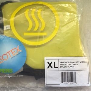 Black neoprene exercise / activewear ladies cami : sweat more & get more out of your workout. Pullover style. Hot Shapers brand. Measurement across fullest part of cami is about 34 inches around, unstretched. Supposed to have a tight fit & stretch when you wear it. Size XL. Never worn! NEW WITH TAG.. Sells new $39-$49. AND Ladies waist trainer black size XL. Stiff elastic, supportive stay in back & tough velcro closure. Unstretched measurement is 36 inches. Hot Shaper brand. NEW.