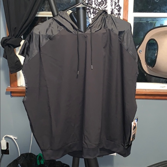 To small for me never worn, made small! Very slick material like a rain jacket, doesn’t have sleeves!