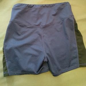 Adore Me blue/purple work out shorts. Size small. Runs small. Black peekaboo cut outs on side.