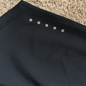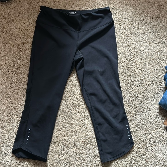 Wide comfortable waistband , active, go dry exercise pants with reflective dots, and a back zippered pocket common non-smoking home