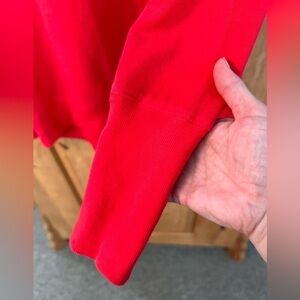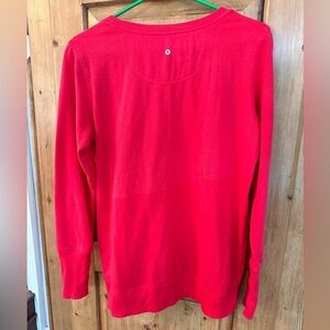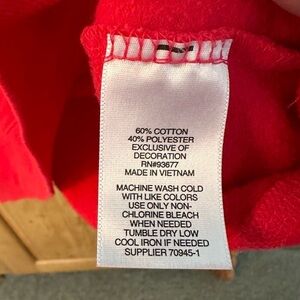 Great and cozy cotton/polyester blend. Back has a line that has a fun color differentiation. In great condition!!