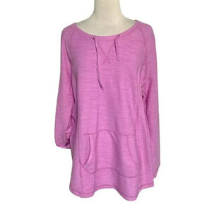 Exertek 1X Plus-size pink sweatshirt with front pocket + optional rolled sleeve
