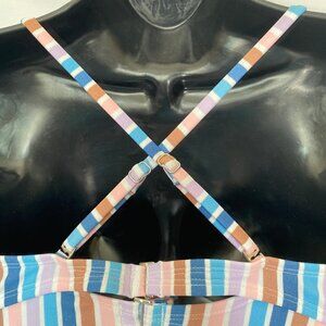 Exhilaration 2 Piece Sexy Multi Color Bikini Set...Adjustable Spaghetti Strap halter top Size Medium...Crisscross in the back & double adjustable hooks for closure and fit...bottoms with moderate bikini fit Size Junior's Small...See photos for details...052121