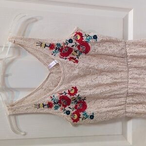 🐢Exhilaration Women's Lace Lined Dress Hi Low Embroidered Front Sz Sm