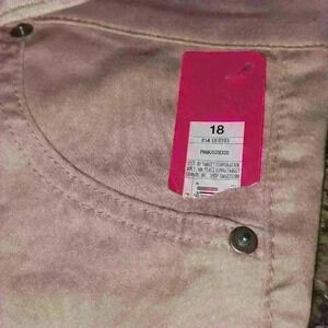 Exhilaration girls pink short size 18. Like baby pink. Style number 014180191. Brand new with tags. 60% cotton 38% polyester 2% spandex. brand new with tags. high waisted three button. baby pink. size 18
