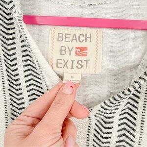 Stylish hoodie with black and white stripes. Features a front pocket and long sleeves. Perfect for casual wear.