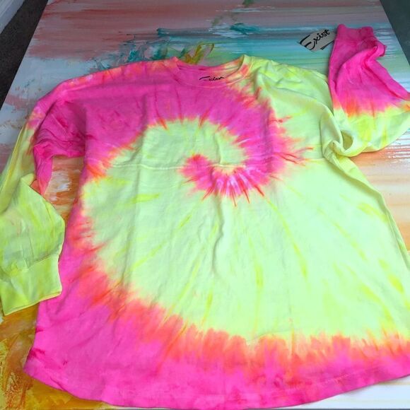 Exist very Bright yellow/pink tie-dye oversized tshirt